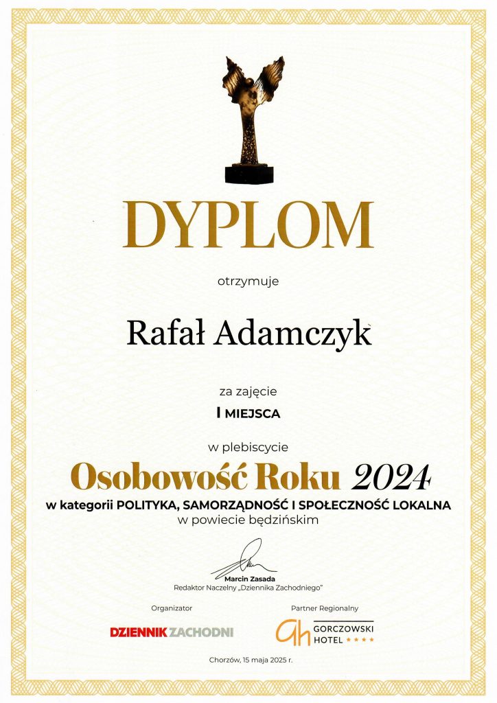 Uzyskanie tytułu Osobowość Roku 2024 w kategorii Polityka, Samorządność i społeczność lokalna w powiecie będzińskim, Dziennik Zachodni.