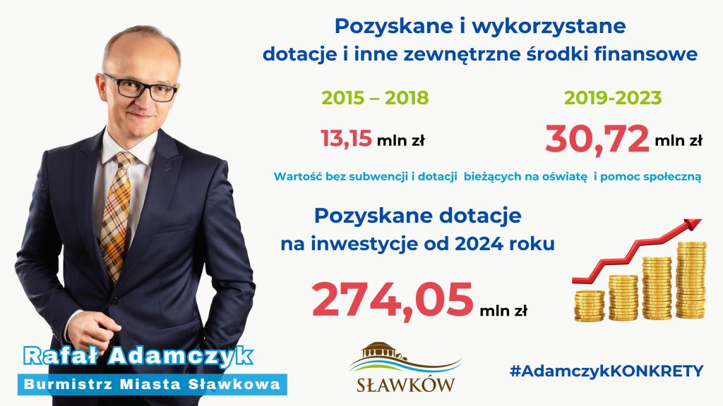 Wartość pozyskanych dotacji to +544% dochodów całkowitych Sławkowa w 2024 roku
