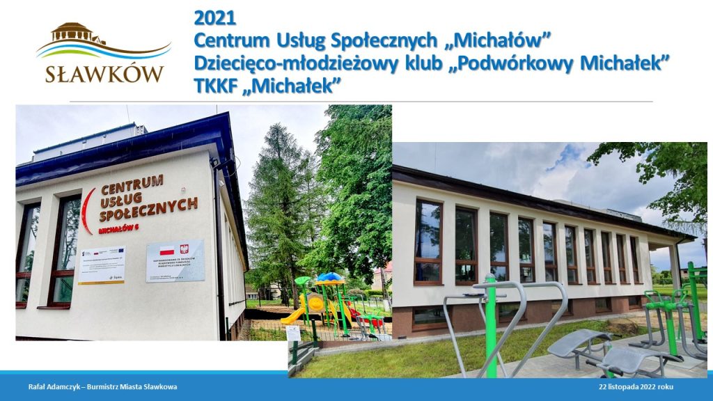 • Adaptacja pomieszczeń budynku komunalnego przy ul. Michałów 6 w Sławkowie na potrzeby Klubu Sportowego TKKF.