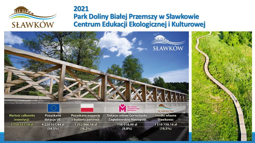 • Rewitalizacja zespołu parkowo – zamkowego i przebudowa infrastruktury ulicy Młyńskiej w Sławkowie.