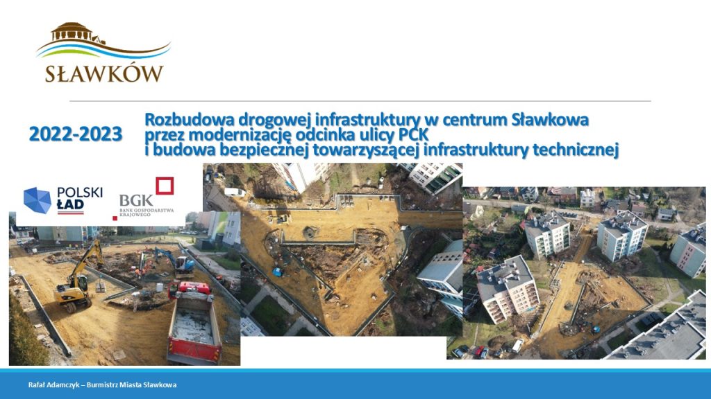 • Budowa drogi z poboczem na ul. Gen. Wł. Sikorskiego i ul. PCK pomiędzy ul. Obrońców Westerplatte i ul. Zawalną w Sławkowie.