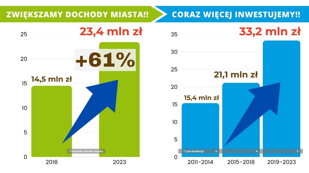 Zrealizowane wydatki inwestycyjne (2015-2025): 86,19 mln zł z czego 53,56 mln zł (62,1%) sfinansowane zostało z pozyskanych dotacji zewnętrznych