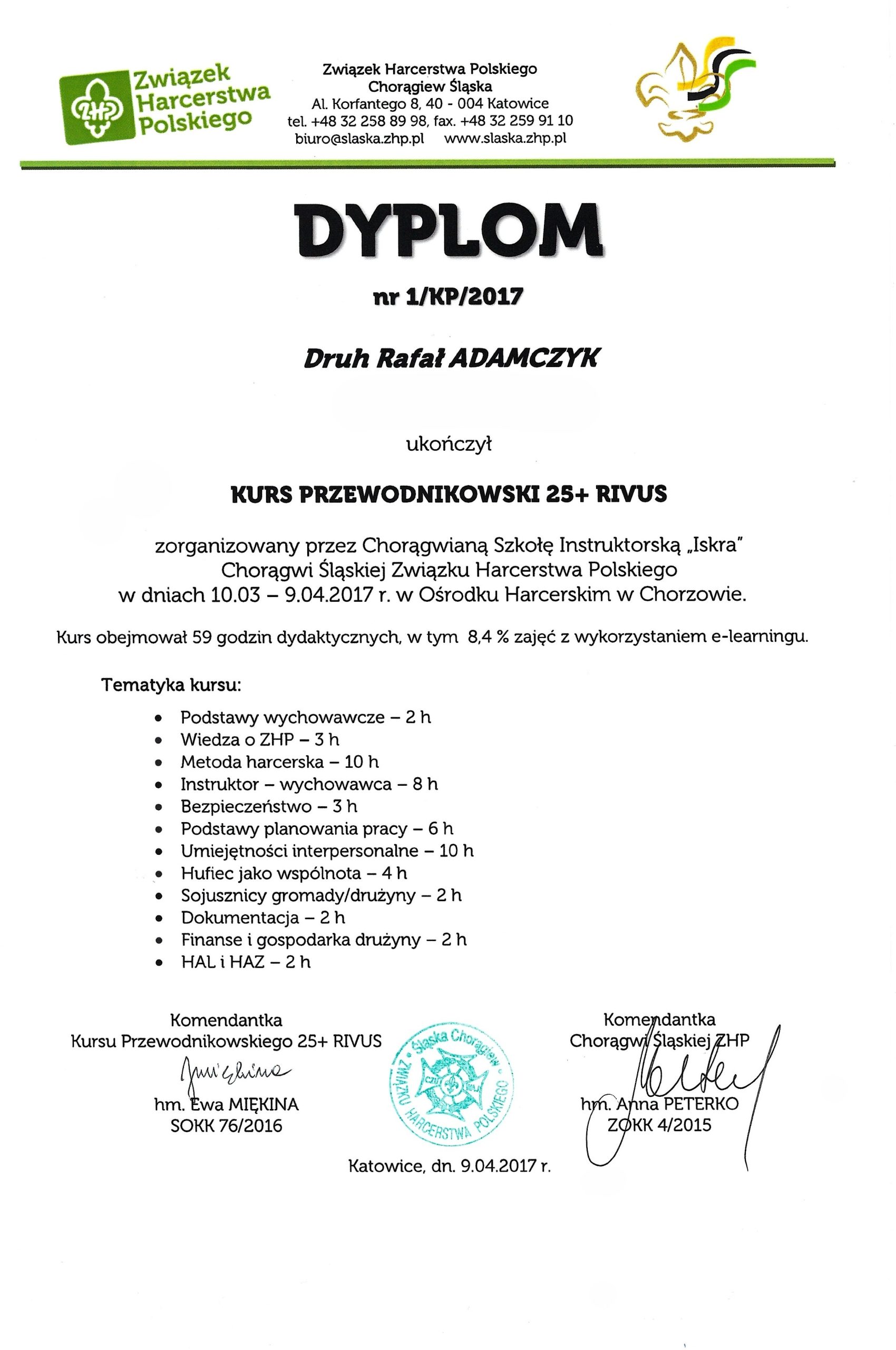 Przewodniczący Harcerskiego Klubu Turystycznego „Złoty Azymut”